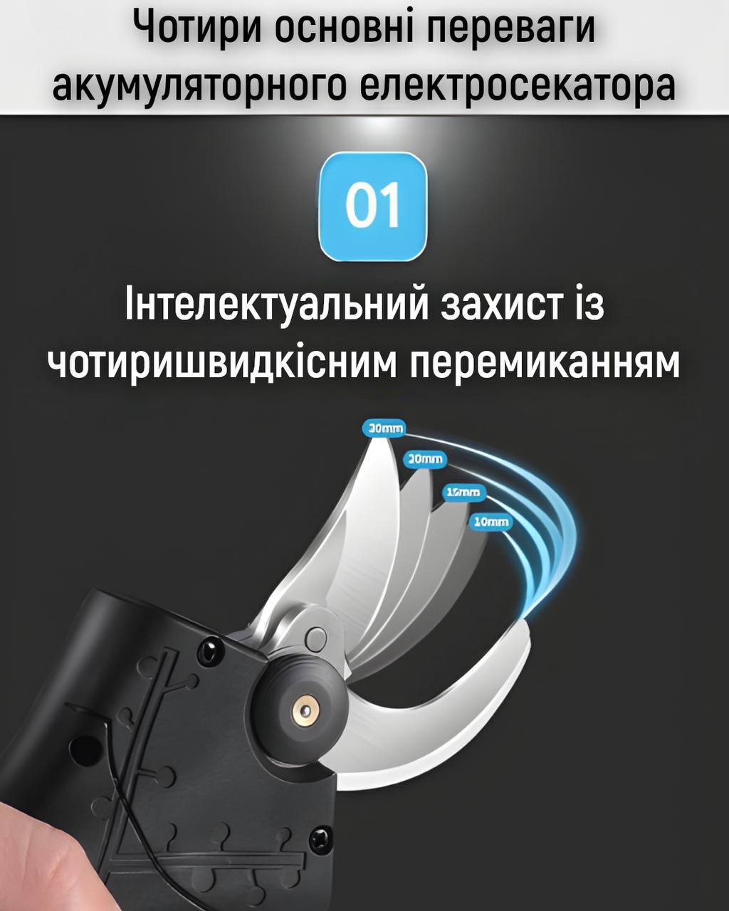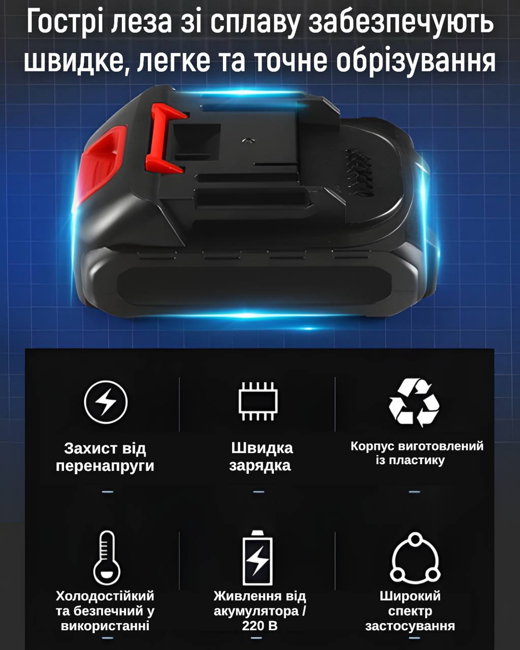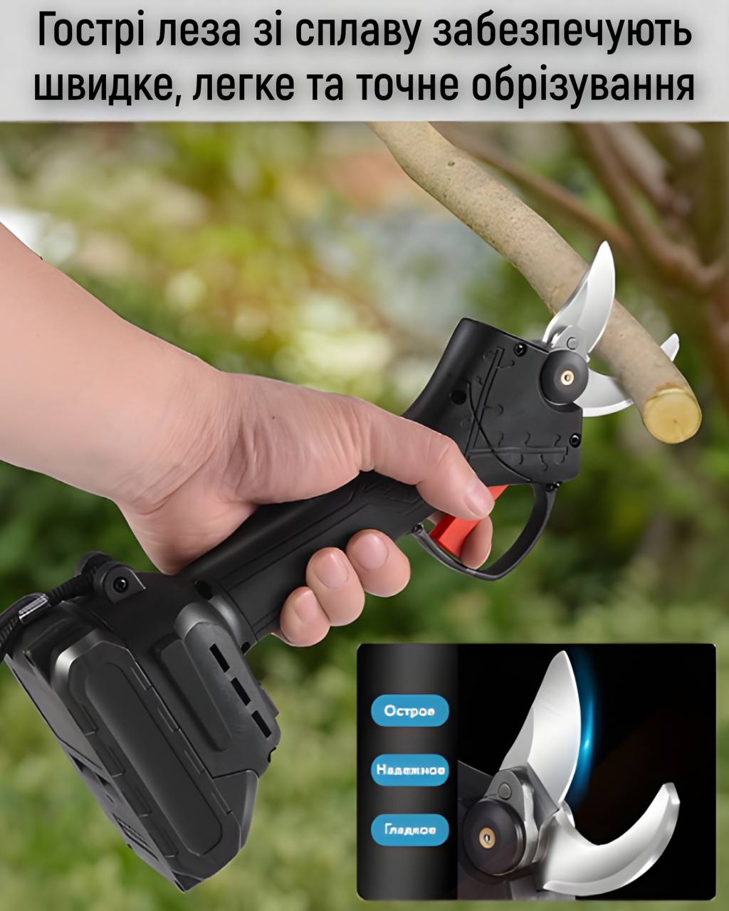 1.Електросекатор для різання гілок акумуляторний